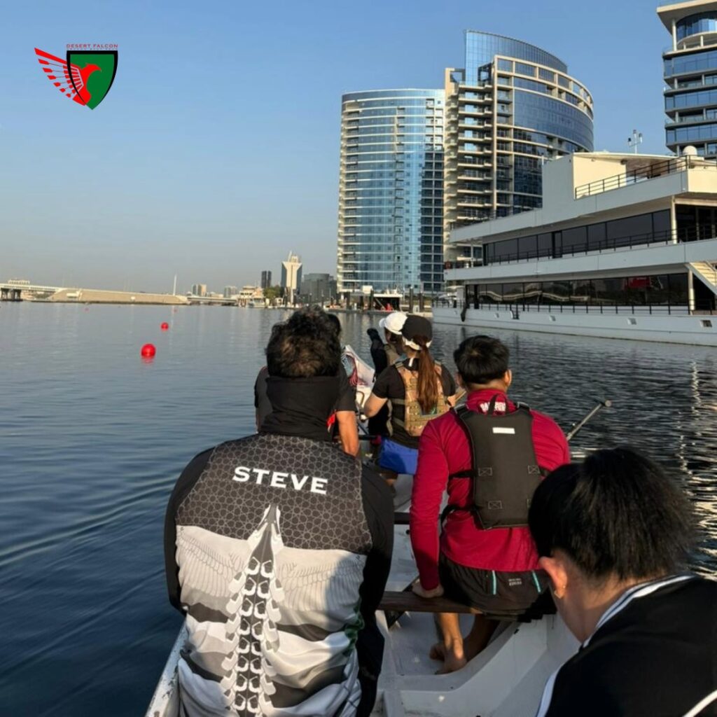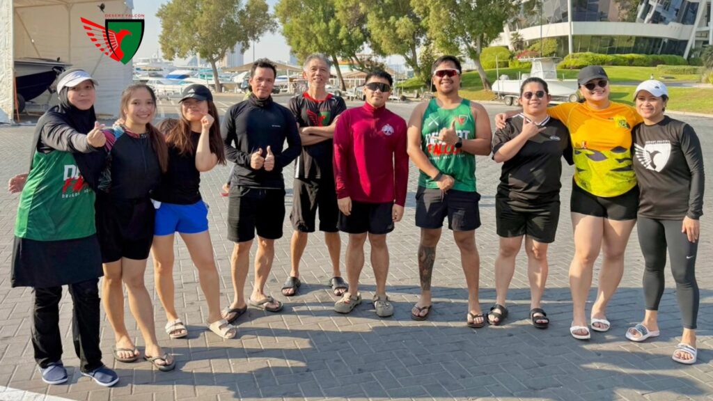 The Desert Falcon team gathered once again at QD’s, Deira Creek, for a focused Dubai dragon boat training session at Deira Creek on the morning of Sunday, December 7, 2025. With the sun rising over calm waters and the city slowly waking up around the creek, the session offered an ideal environment forCto work on rhythm, boat balance, and controlled endurance. Morning trainings often demand a different mindset, and the Falcons embraced the quiet intensity that comes with early starts.